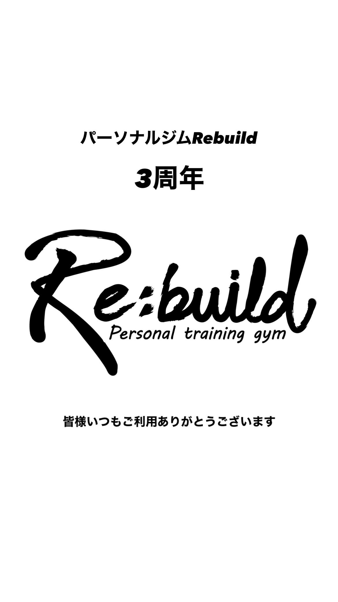 パーソナルジムRebuildは3周年を迎えました。